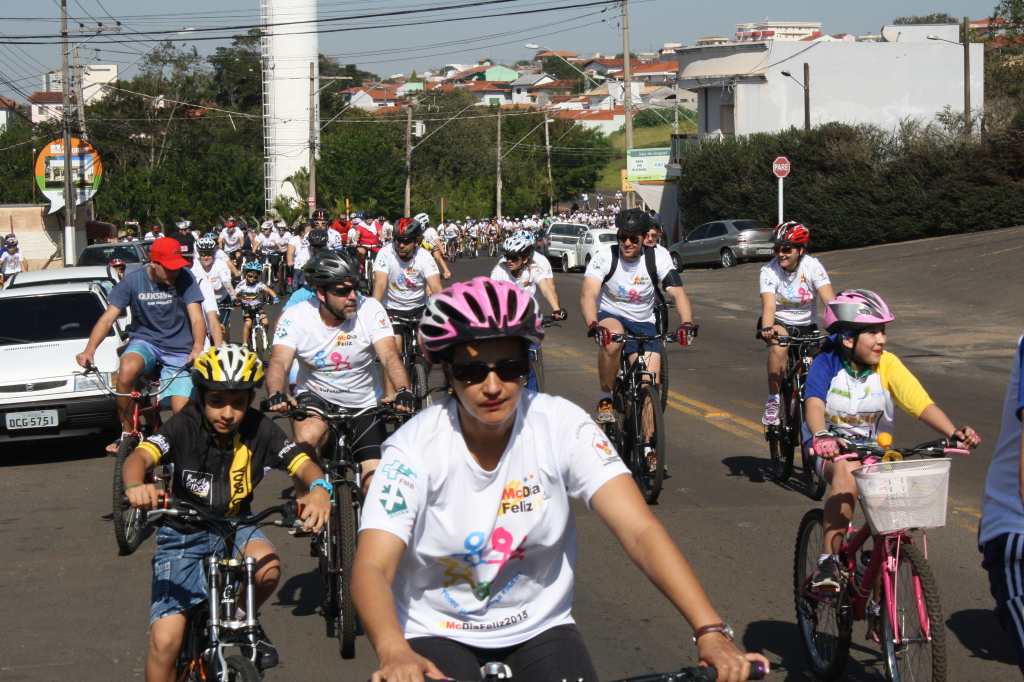 Mais de 250 pessoas prestigiaram o 1º Passeio Ciclístico do McDia Feliz Botucatu realizado neste sábado, 8. Além de pedalar pelas principais ruas e avenidas da cidade, em um percurso de 13 km, os participantes contribuíram para divulgar a campanha que visa ajudar as crianças em tratamento de câncer internadas na Oncologia Pediátrica do Hospital das Clínicas da Faculdade de Medicina de Botucatu (HCFMB).