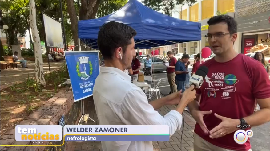 Na última quinta-feira, 14, o jornal “Tem Notícias 1ª Edição”, da TV TEM, realizou uma entrada ao vivo diretamente da Praça do Bosque para destacar as ações de conscientização relacionadas ao Dia Mundial do Rim, promovidas pelo Hospital das Clínicas da Faculdade de Medicina de Botucatu (HCFMB) e pela Faculdade de Medicina de Botucatu (FMB|Unesp), com o apoio da Secretaria Municipal de Saúde de Botucatu.