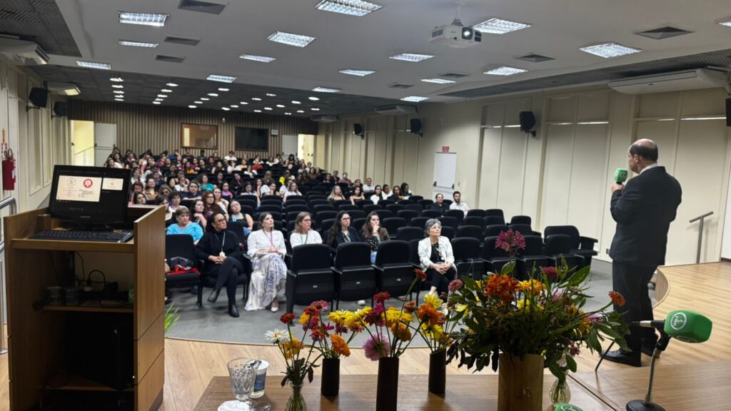 O Hospital das Clínicas da Faculdade de Medicina de Botucatu – Unesp (HCFMB) promoveu na última quarta, 27 o evento “Sensibilização ao Aleitamento Materno – Agosto Dourado”, com o tema “Priorizemos a Amamentação: Construindo Sistemas de Apoio Sustentáveis”. A programação integrou as ações da Semana Mundial de Aleitamento Materno de 2025 e reuniu profissionais da saúde e comunidade em geral em uma tarde de reflexão e aprendizado sobre a importância do aleitamento materno.