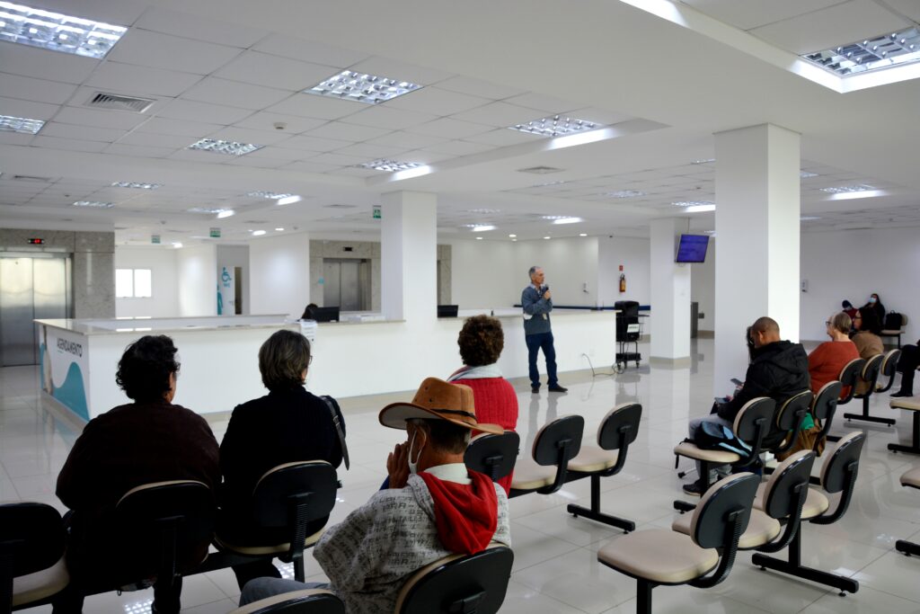 A iniciativa permite que a equipe multiprofissional transmita informações de assuntos relacionados à saúde, por meio de vídeos ou presencialmente, aos pacientes atendidos no Ambulatório de Especialidades do HCFMB e a seus acompanhantes.