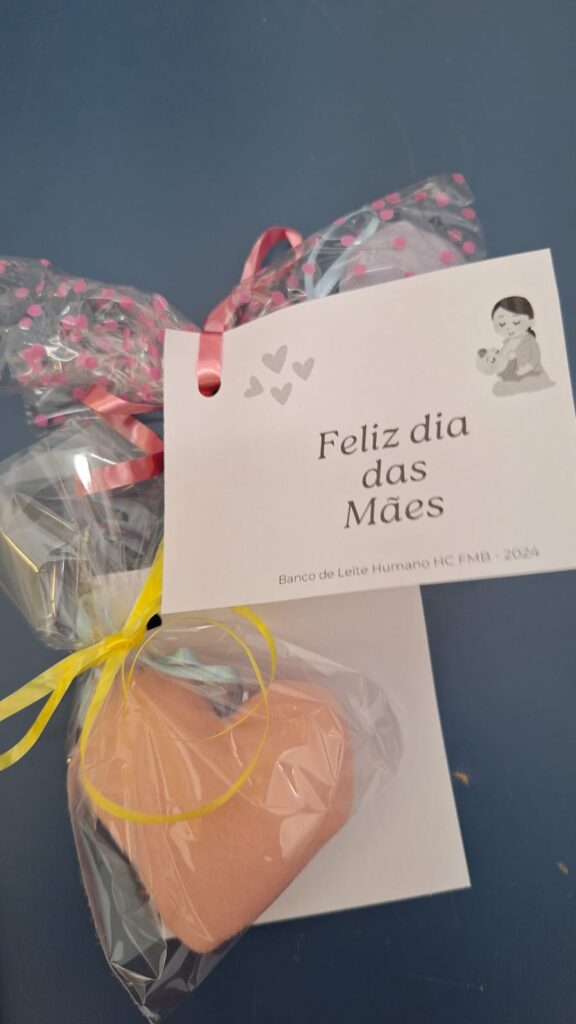 “Estas singelas lembranças servem para agradecer a todas as nossas doadoras por esse grande ato de doar seu amor em forma de alimento, destinada para os bebês que precisam”, relata Angélica Pereira da Cunha de Almeida, nutricionista e responsável técnica do Banco de Leite Humano do HCFMB.
