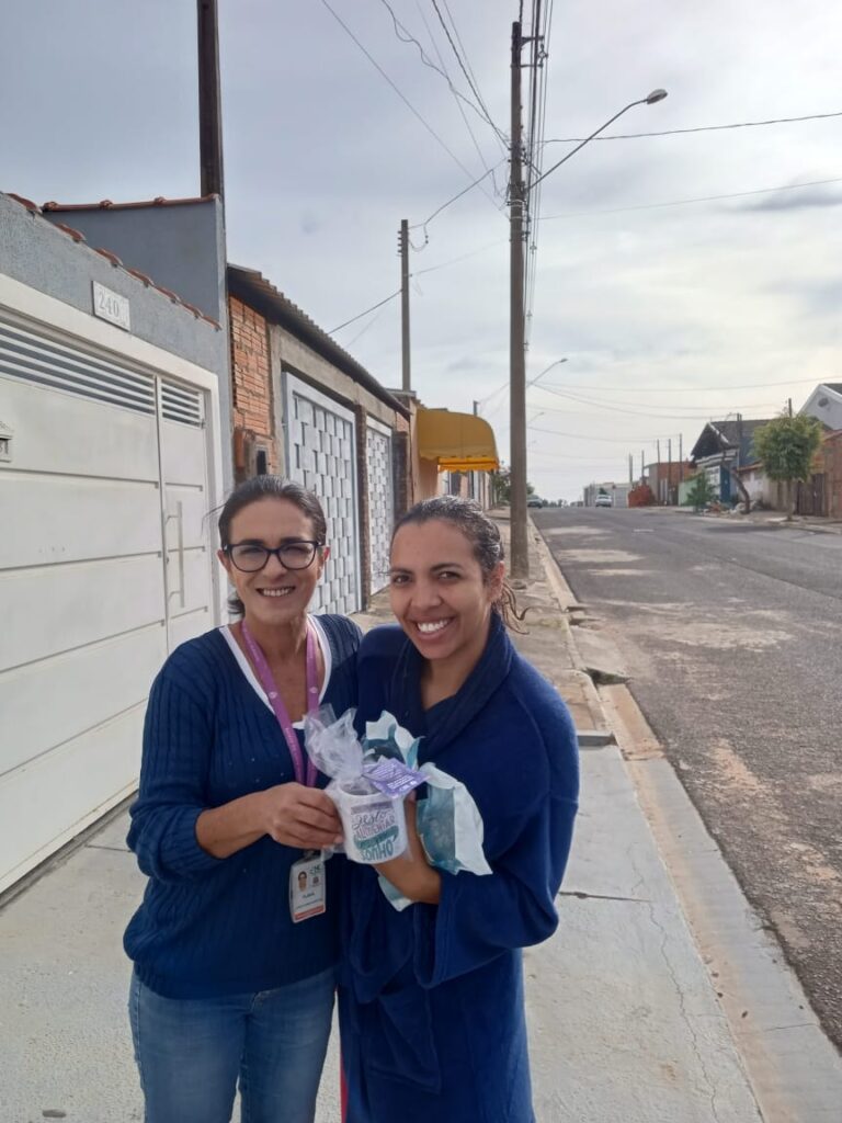 Continuando as comemorações do Dia Mundial de Doação de Leite Humano, na segunda-feira, 22, a equipe do Banco de Leite Humano (BLH) do Hospital das Clínicas da Faculdade de Medicina de Botucatu (HCFMB) esteve nas casas de algumas doadoras para entregar uma singela lembrança, como reconhecimento e homenagem pelo gesto de solidariedade de cada uma delas.