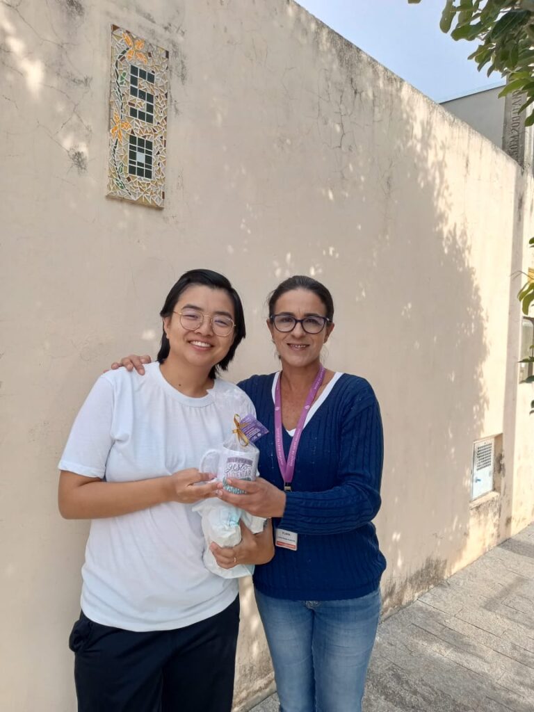 “Entregamos um pequeno mimo para nossas doadoras, para agradecer por esse grande ato de doar seu amor em forma de alimento para os bebês que precisam”, relata Angélica Pereira da Cunha de Almeida, nutricionista e responsável técnica do Banco de Leite Humano do HCFMB.