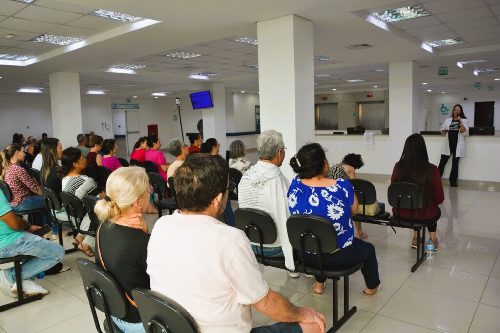 A iniciativa permite que a equipe multiprofissional transmita informações de diversos assuntos, por meio de vídeos ou presencialmente, aos pacientes atendidos no Ambulatório de Especialidades do HCFMB e a seus acompanhantes.