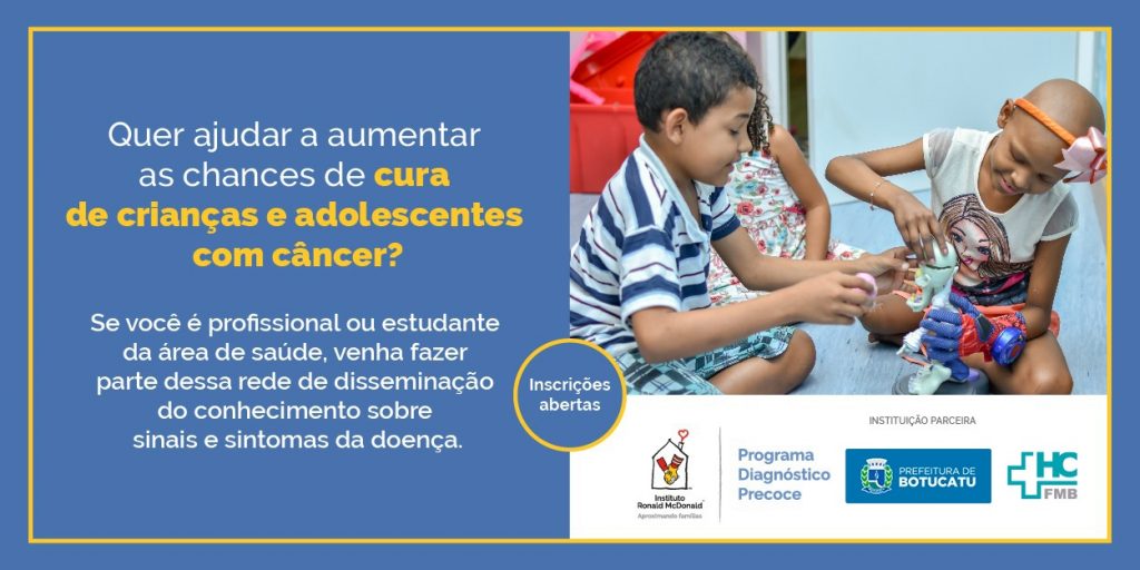 O HCFMB, em parceria com o Instituto Ronald McDonald e a Prefeitura Municipal de Botucatu, disponibiliza a Capacitação no Diagnóstico Precoce do Câncer Infantojuvenil para os profissionais da saúde da rede básica de saúde de Botucatu.