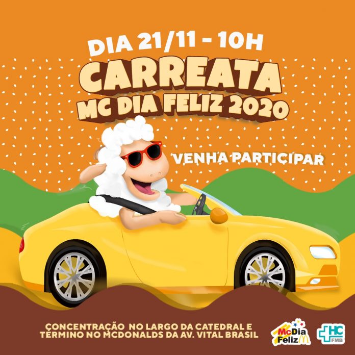 No próximo dia 21, a Fundação para o Desenvolvimento Médico e Hospitalar (Famesp), em parceria com o Hospital das Clínicas da Faculdade de Medicina de Botucatu (HCFMB), realizará a Carreata McDia Feliz 2020. O ponto de concentração dos carros será o Largo da Catedral (Praça Rubião Júnior, s/n – Centro), com saída a partir das 10h, e o término das atividades no restaurante do McDonald’s, na Av. Vital Brasil.