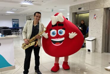 Mascote do Hemocentro do HCFMB, Gotita participa de ação no Dia Nacional do Doador de Sangue