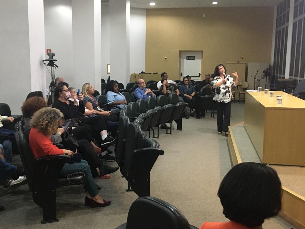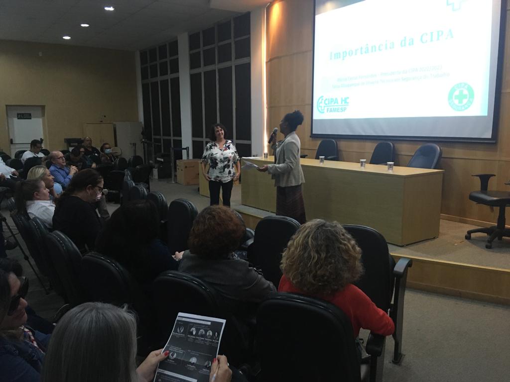 No primeiro dia da SIPAT, a Enfermeira do Núcleo de Segurança do Paciente e Presidente da Comissão Interna de Prevenção de Acidentes (CIPA) do HCFMB, Márcia Cercal Fernandes, foi uma das integrantes do seminário “Importância da COMSAT e da CIPA”, relatando os desafios e realizações da Comissão ao longo das gestões, juntamente com representantes do Hospital Infantil Darcy Vargas, Hospital e Maternidade Leonor Mendes de Barros e do Hospital das Clínicas da Faculdade de Medicina da Universidade de São Paulo (HCFMUSP).
