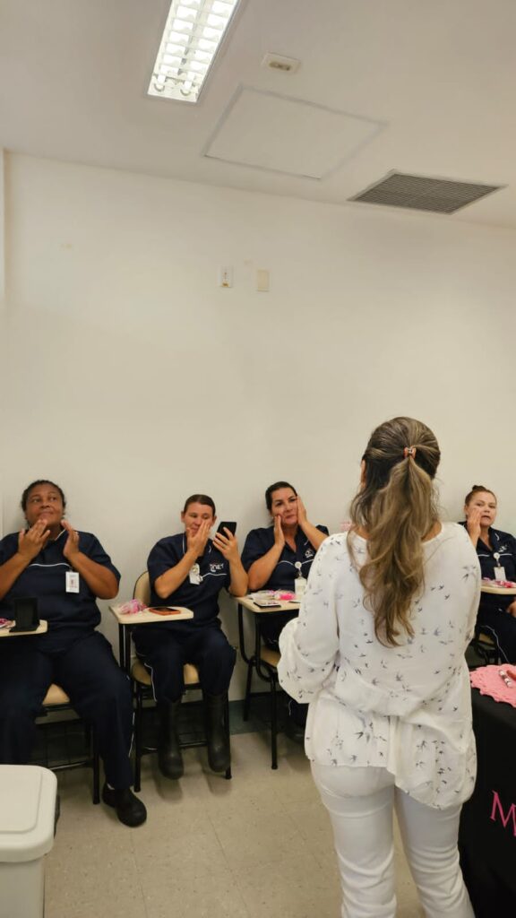 Já no dia seguinte, o auditório Fepaf da Faculdade de Ciências Agronômicas (FCA | Unesp) e o Centro de Saúde Escola (CSE) da Vila dos Lavradores receberam oficinas de maquiagem, em parceria com a Mary Kay, e as participantes também puderam experimentar a técnica AromaTouch nas mãos, idealizada pela empresa dōTERRA para proporcionar relaxamento e diminuir a tensão. A psicóloga e especialista em Gestão da Saúde Martha Negrisoli conduziu, nestes locais, uma roda de conversa com o tema “Cuidando de si: equilibrando trabalho e vida com sabedoria”.