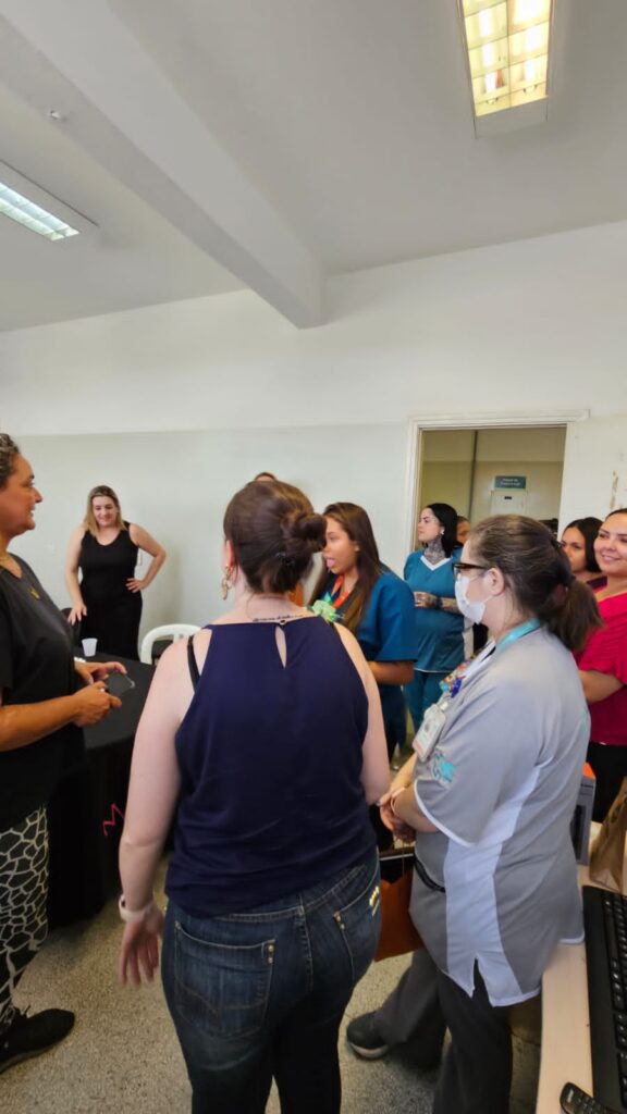 As atividades da Semana da Mulher foram encerradas nesta segunda-feira, 31, nas unidades externas do HCFMB. Além das oficinas de Aromatouch e de maquiagem, o Hospital Estadual Botucatu (HEBo), o Pronto-Socorro Adulto (PSA) e o Serviço de Atenção e Referência em Álcool e Drogas (SARAD) receberam uma roda de conversa sobre a temática “Mulheres em equilíbrio: vida profissional e pessoal em harmonia”, apresentada pela psicóloga e mestre em Saúde Coletiva Caroline Martins Varge.