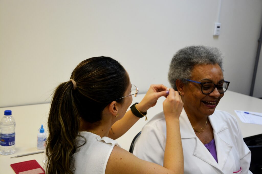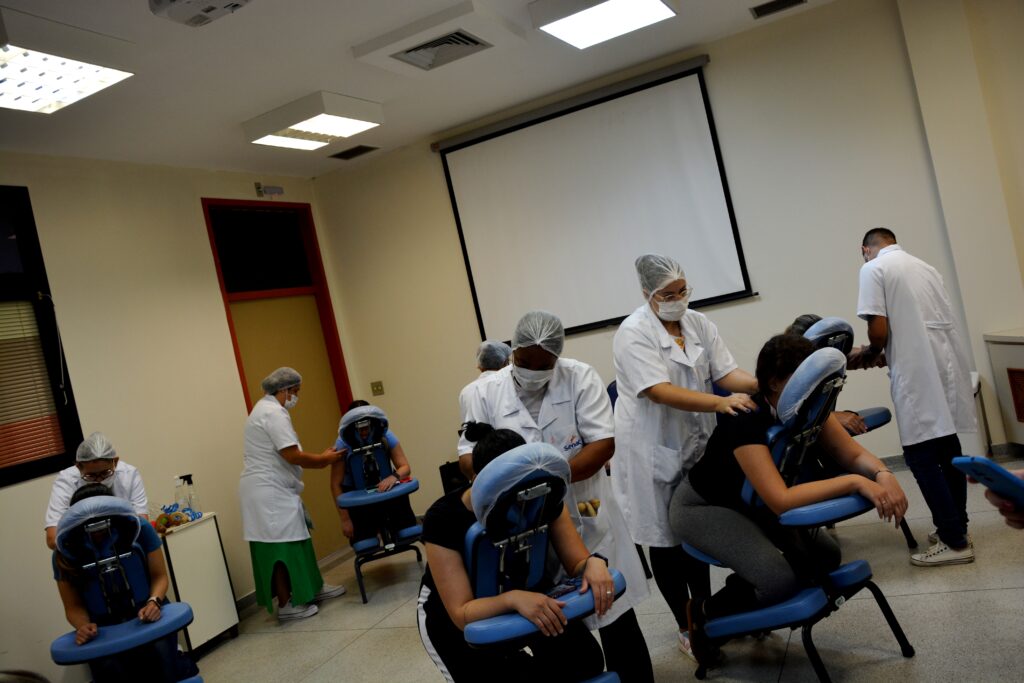Além do AromaTouch, durante os dias 5, 6 e 7 nos períodos da manhã, tarde e noite, as servidoras do HCFMB também puderam usufruir do serviço de spa express. Já na sexta-feira, 8 de março, o 6º andar do Ambulatório de Especialidades recepcionou o spa express e a técnica AromaTouch.
