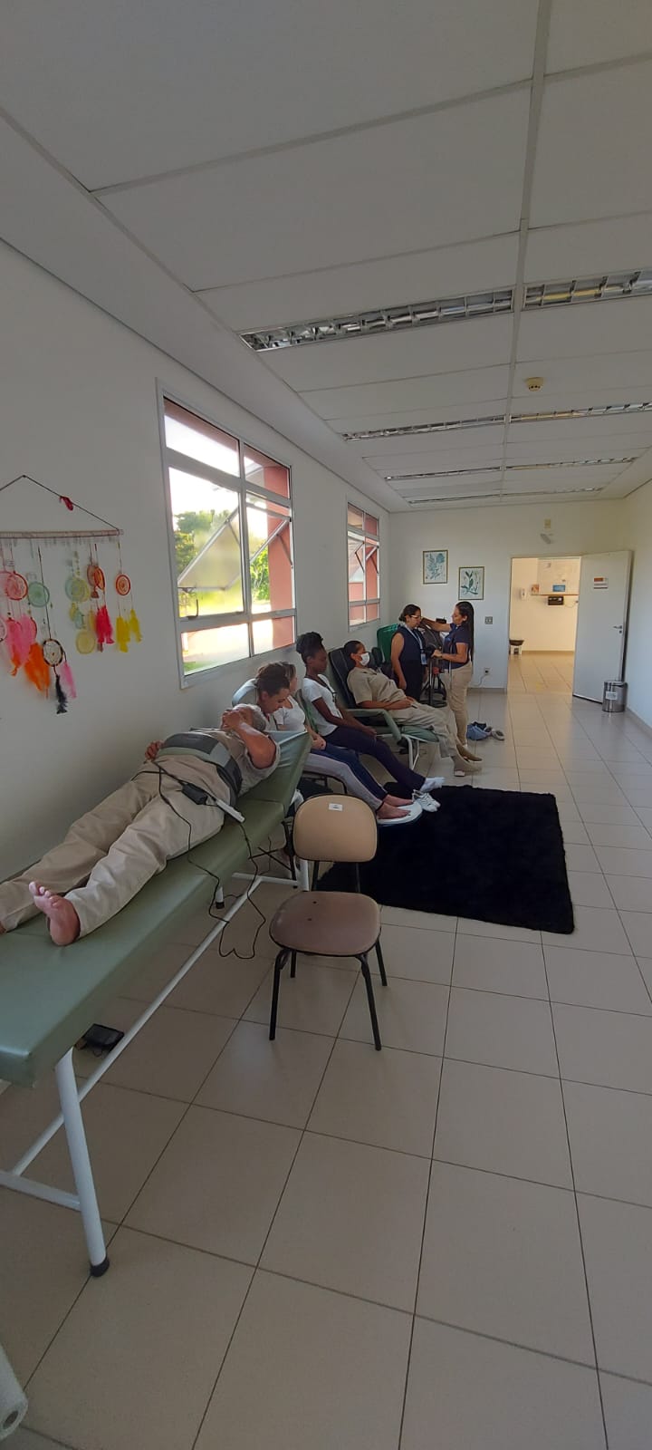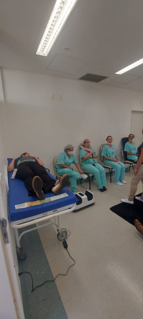 Também neste dia, as colaboradoras do Hospital Estadual Botucatu (HEBo), do Pronto-Socorro Adulto (PSA) e do Serviço de Atenção e Referência em Álcool e Drogas (SARAD) puderam usufruir do spa express, oferecido pela empresa EsteticMed, que consiste em um circuito de curta duração de reflexologia, drenagem linfática e massagem através de aparelhos mecânicos.