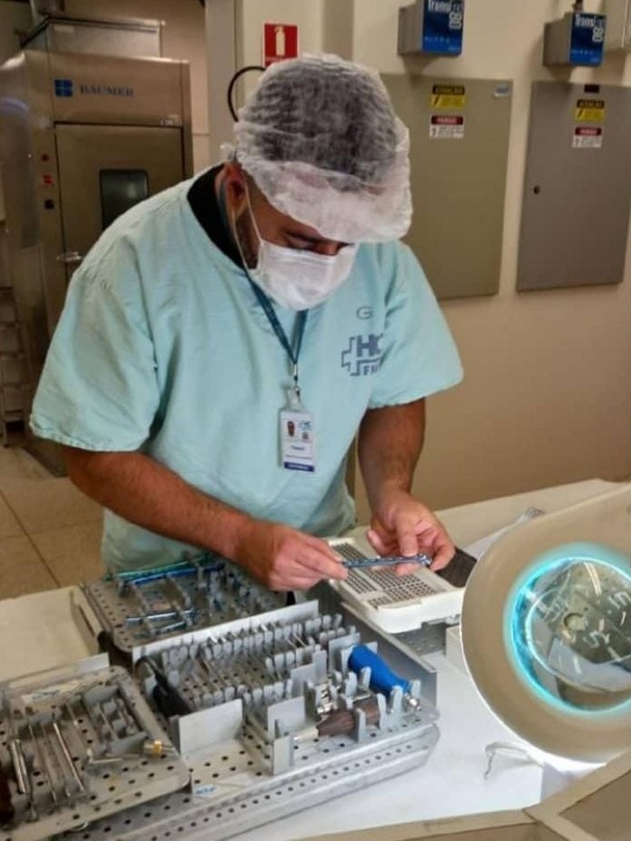 Ele tem mais de duas décadas de atuação e frisa que o exercício da enfermagem é “fazer algo a alguém sem querer nada em troca”. Thiago Fernando Rodrigues é Enfermeiro Assistencial Central de Material e Esterilização (CME) do HCFMB e está na Instituição desde 2007.