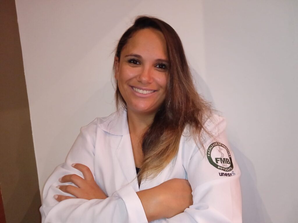 Tatiane Pontelli Corrêa de Melo é Supervisora Técnica da Enfermaria de Cardiotórax do HCFMB. Com nove anos de atuação na Enfermagem, ela lembra que os profissionais da área têm a missão de “ajudar um pouquinho o próximo”.