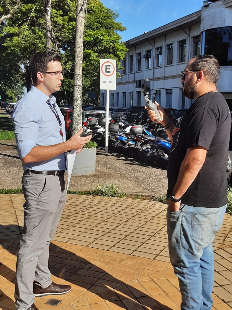 Dr. Welder Zamoner (esquerda) com o repórter Lucas Machado, da Rádio Criativa FM