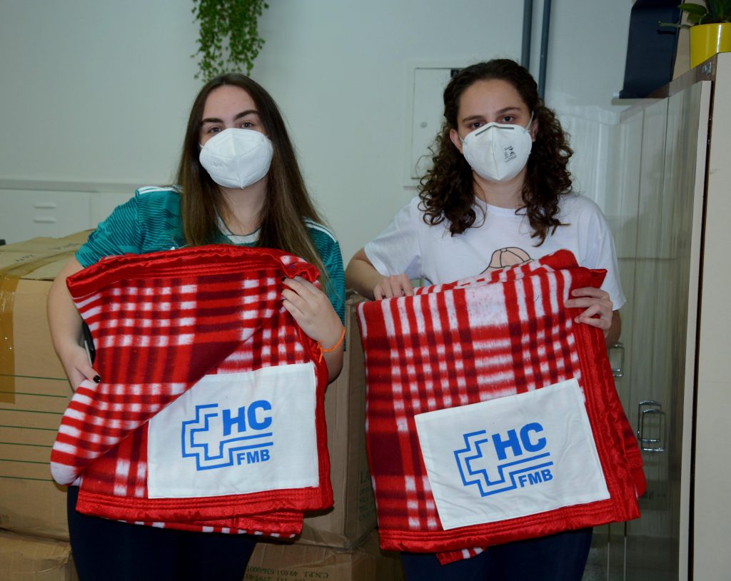As jovens Julia Monteiro e Ingrid Buchignani de Oliveira representaram diversos corações que se uniram para a doação de cobertores personalizados ao HCFMB, através do projeto “Ação comunitária em Botucatu”, que realiza doações para instituições hospitalares da cidade. “Pretendemos, futuramente, fazer outras doações para ajudar a todos os pacientes do Hospital”, afirmam.