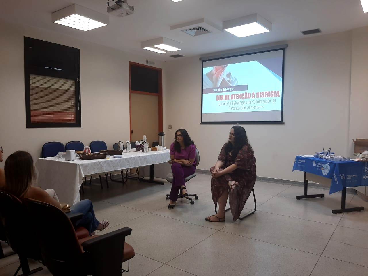 A primeira palestra foi ministrada pela fonoaudióloga e nutricionista Alessandra Rischiteli Bragança Silva, com o tema “Desafios da alimentação adaptada do disfágico; atuação transprofissional”. Na sequência, a “Disfagia e a ‘Morte do Comer’ ” foi o assunto abordado pela psicóloga Aline Zeller Pereira de Souza. Após as palestras, houve um momento de discussão e perguntas com o público presente.
