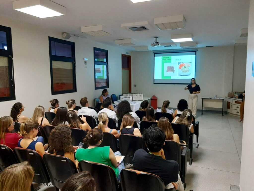 Já no período noturno, foram realizadas palestras no Miniauditório voltadas para profissionais da Saúde, sobre os principais desafios e estratégias na padronização de consistências alimentares.