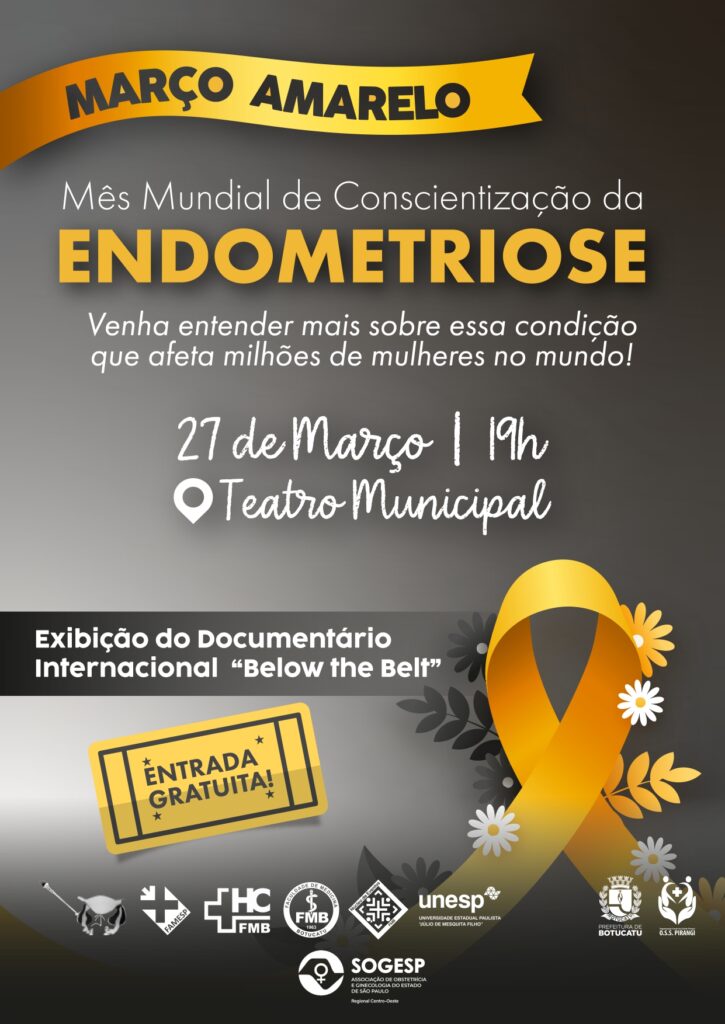 Como parte da programação do “Março Amarelo”, mês mundial de conscientização sobre a endometriose, o Setor de Endoscopia Ginecológica e Planejamento Familiar, do Departamento de Ginecologia e Obstetrícia da Faculdade de Medicina de Botucatu – FMB/Unesp, em parceria com o Hospital das Clínicas da Faculdade de Medicina de Botucatu – Unesp (HCFMB) e Prefeitura Municipal de Botucatu, através das Secretarias de Saúde e Cultura, promoverão a apresentação do documentário internacional “Below the Belt”.
