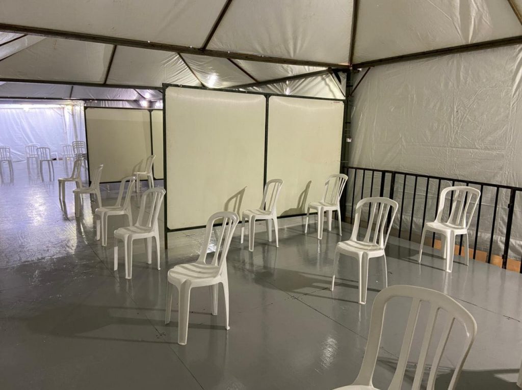 O período de pandemia elevou consideravelmente os atendimentos de pacientes com suspeita ou confirmados de COVID-19, o que acabou sobrecarregando o espaço físico da unidade. Entre as soluções pensadas em conjunto com a Prefeitura, está a instalação de uma tenda ao ar livre, para que pacientes com sintomas gripais aguardem atendimento de acordo com todas as medidas de segurança que o período exige.