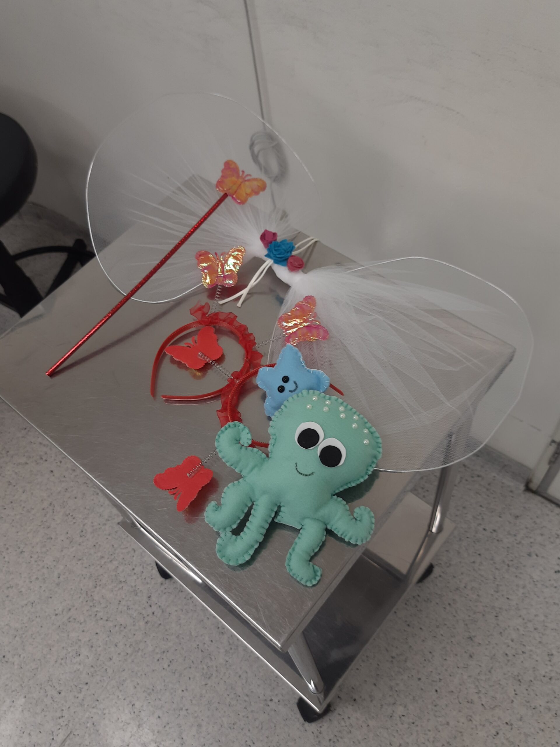 Para viabilizar a iniciativa, a equipe de enfermagem realiza uma preparação prévia. São duas opções: uma viagem ao espaço, em que astronautas estarão prontos para oferecer todo cuidado que ele precisa, ou à floresta encantada, onde as fadas serão responsáveis por todo o seu tratamento.
