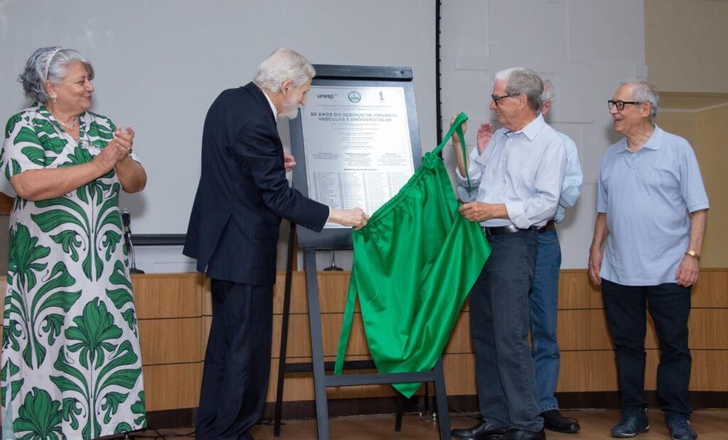 Uma placa comemorativa foi descerrada, homenageando todos os residentes formados pelo serviço ao longo dos anos. Os presentes também participaram de um tour pelas novas instalações do serviço no Hospital das Clínicas da Faculdade de Medicina de Botucatu (HCFMB) – incluindo a enfermaria, o laboratório vascular e a hemodinâmica/angiografia digital -, além do plantio de uma árvore nos jardins da faculdade.