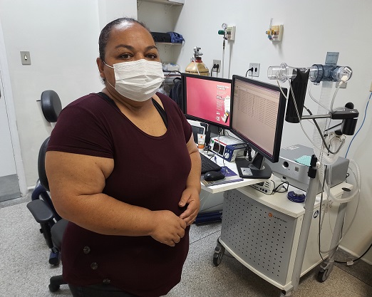 Após nove meses de alta hospitalar, a equipe de Nefrologia do HCFMB solicitou acompanhamento de Denise pelo Serviço de Pneumologia, uma vez que seus pulmões também apresentaram sequelas após a COVID.