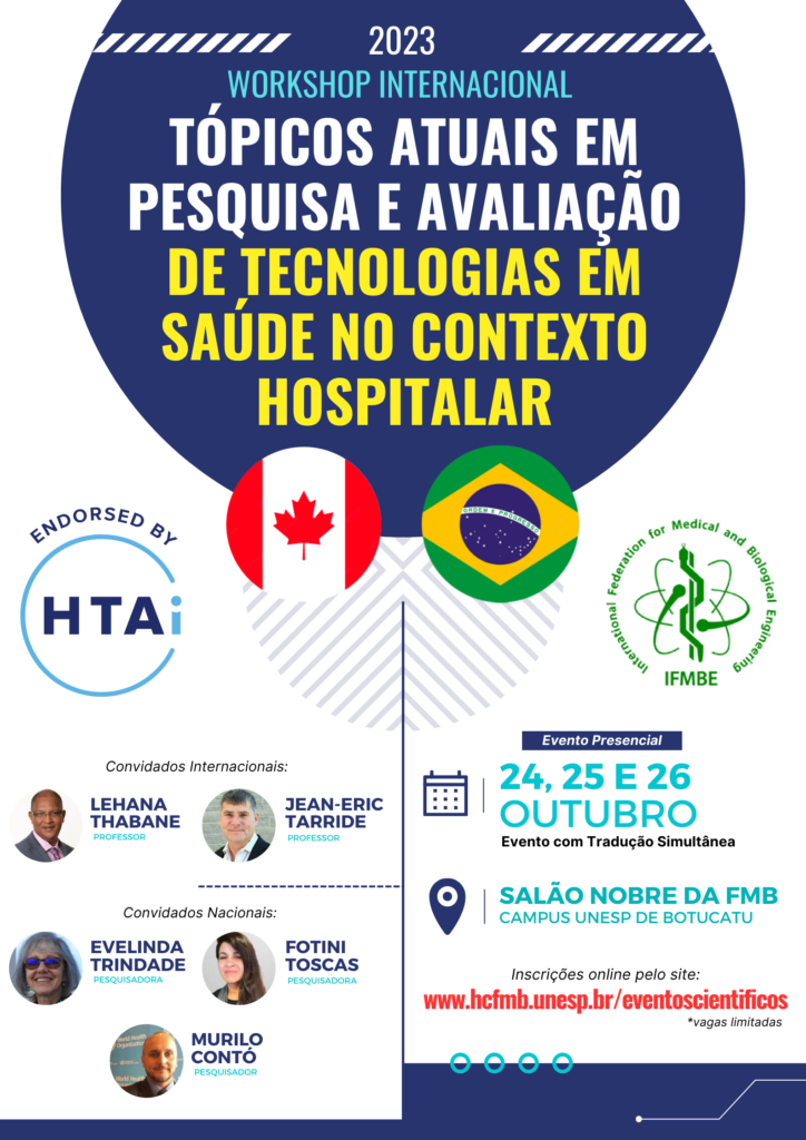 O Hospital das Clínicas da Faculdade de Medicina de Botucatu (HCFMB), em parceria com a FMB | Unesp, convida para participar do Workshop Internacional: Tópicos Atuais em Pesquisa e Avaliação de Tecnologias em Saúde no Contexto Hospitalar, que será realizado nos dias 24, 25 e 26 de outubro, no Salão Nobre da FMB, a partir das 8h.