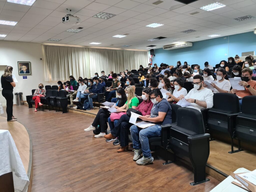 A coordenadora do Conselho da Residência Médica (COREME) da FMB, Prof.ª Assoc. Cátia Regina Branco da Fonseca, lembrou que este é o terceiro ano em que residentes e especializandos são recepcionados de forma conjunta. “Nossa instituição é bastante acolhedora e prezamos pelo ensino e pela assistência adequada. Agradeço à equipe que organizou esta recepção e à vacina que nos propiciou esta recepção presencial depois de alguns anos de enfrentamento da Covid-19”.