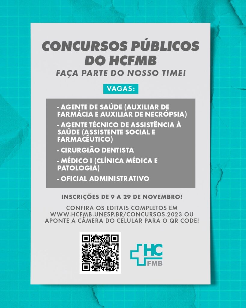 HCFMB anuncia oito Editais de Concursos Públicos para diversos cargos