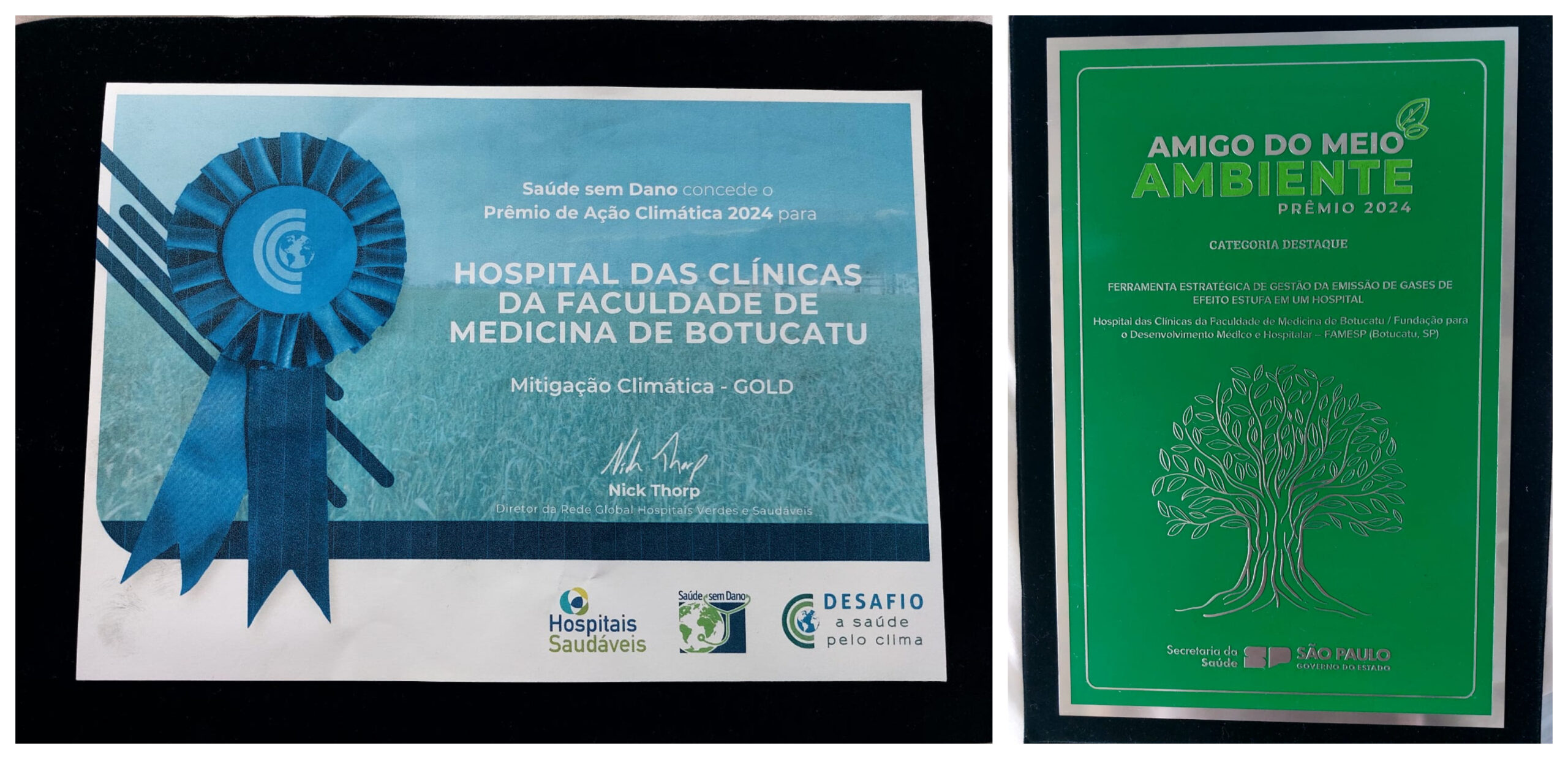 Neste mesmo evento, o Hospital foi reconhecido com o Prêmio de Ação Climática 2024, entregue pelo Projeto Hospitais Saudáveis e pela Rede Global Hospitais Verdes e Saudáveis, na categoria Mitigação Climática – Ouro, como reconhecimento da diminuição das emissões de GEE que o HCFMB conseguiu realizar em 2023. Apenas cinco instituições de saúde brasileiras tiveram destaque nesta premiação internacional.