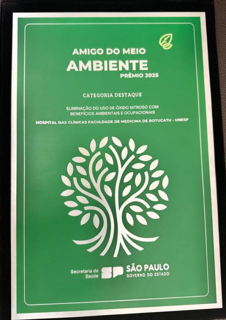 O projeto “Eliminação do uso de óxido nitroso no ambiente hospitalar: benefícios ambientais e ocupacionais”, desenvolvido pelo Núcleo de Hospitais Sustentáveis (NHS) do Hospital das Clínicas da Faculdade de Medicina de Botucatu – Unesp (HCFMB), foi reconhecido entre os 15 melhores trabalhos da 18ª edição do Prêmio Amigo do Meio Ambiente (PAMA) 2025.