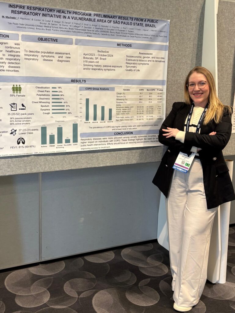 Outro projeto desenvolvido no HCFMB também foi apresentado no congresso – “Inspire Respiratory Health Program: Preliminary Results From a Public Respiratory Initiative in a Vulnerable Area of São Paulo State, Brazil” (Programa Inspire Saúde Respiratória: Resultados Preliminares de uma Iniciativa Respiratória Pública em uma Área Vulnerável do Estado de São Paulo, Brasil)