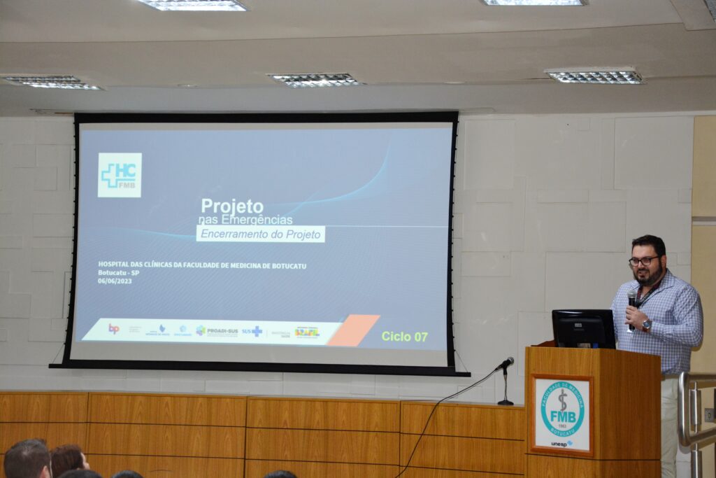 Dr. Willian Sacco Altran, médico do Pronto-Socorro Referenciado (PSR) do HCFMB, apresentou as principais ações realizadas durante o semestre e dados comparativos entre o início e o final deste ciclo do projeto.