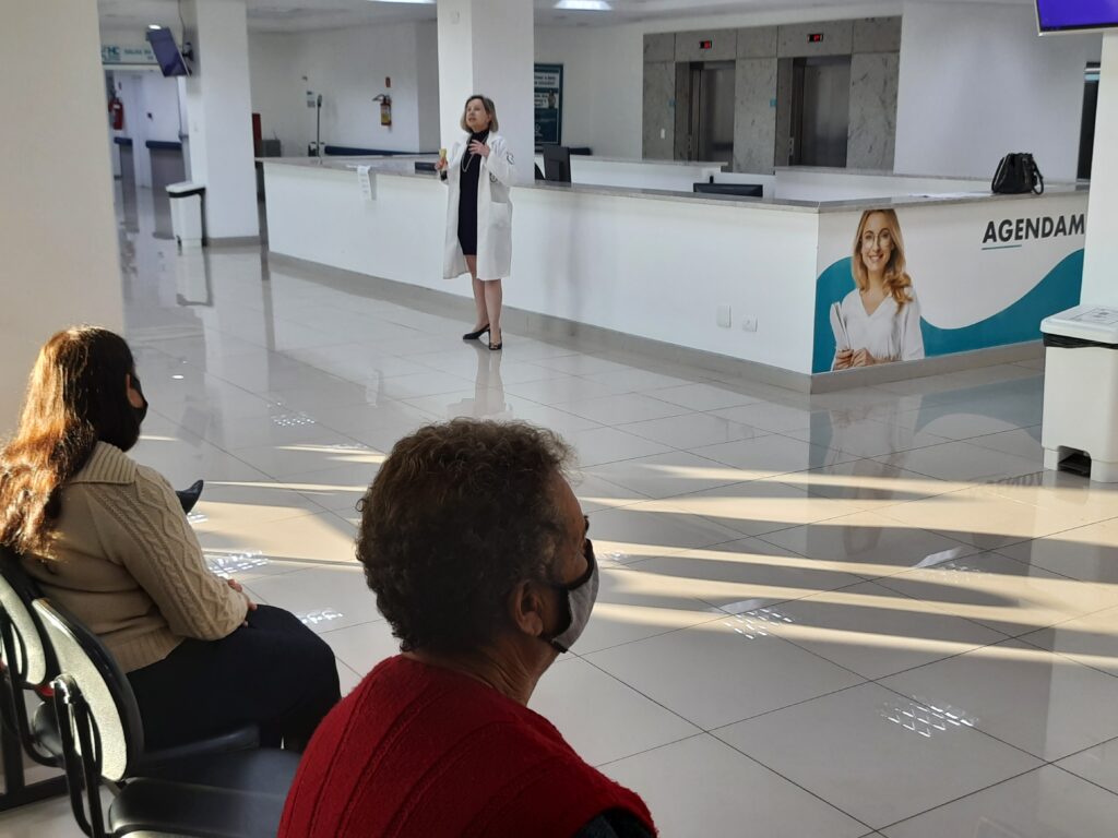 A iniciativa permite que a equipe multiprofissional transmita informações de assuntos relacionados a saúde, por meio de vídeos ou presencialmente, aos pacientes que possuem atendimento no Ambulatório de Especialidades do HCFMB, bem como seus acompanhantes.