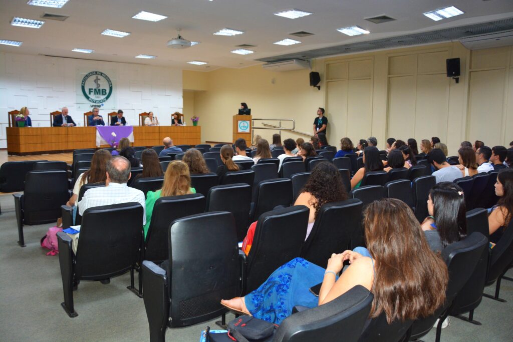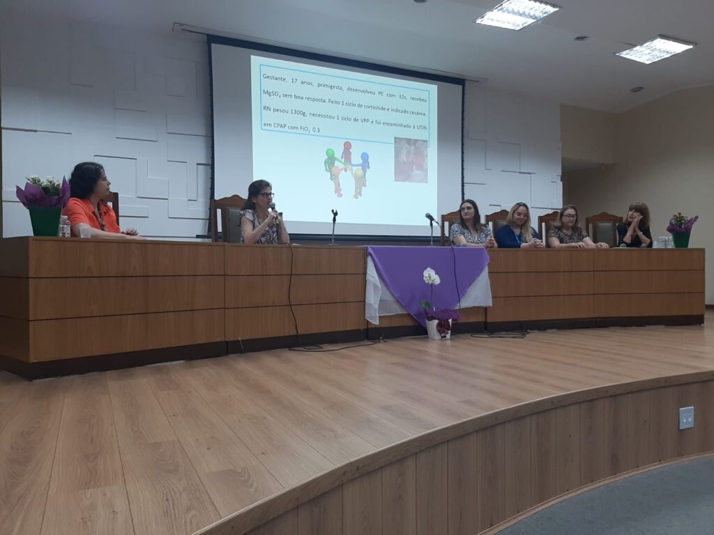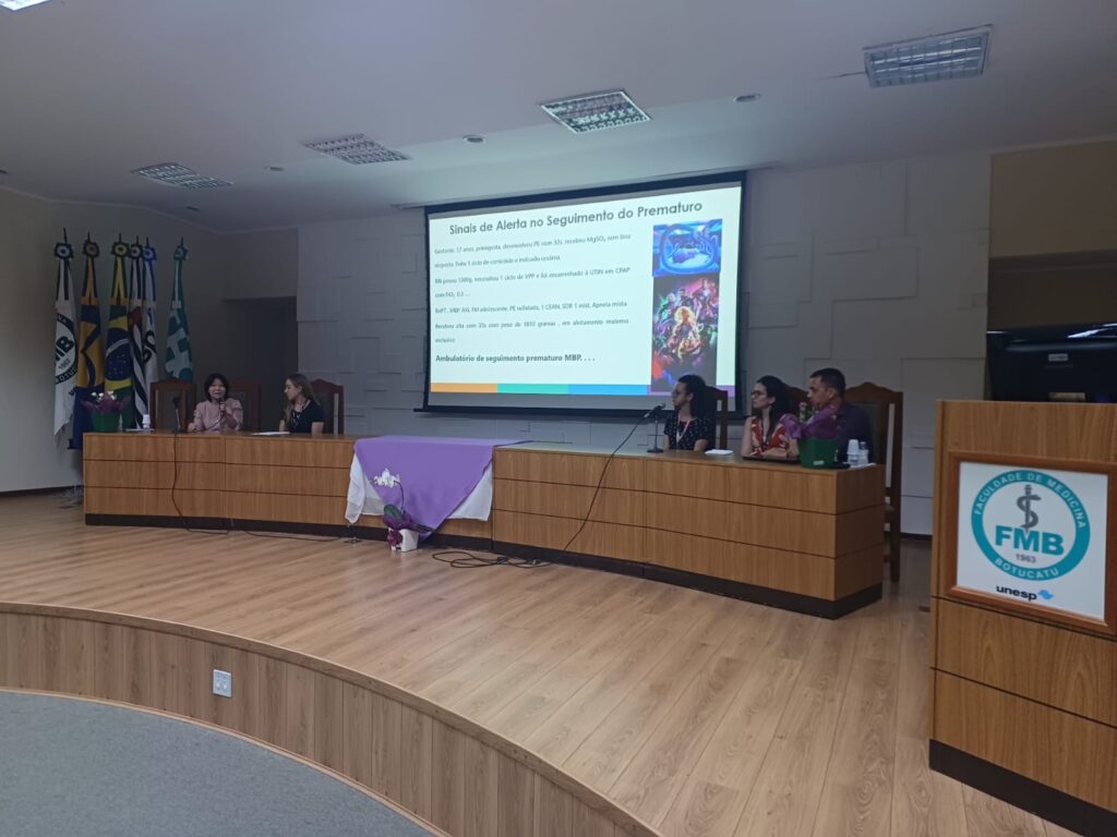 Após o culto, as atividades científicas foram realizadas no Salão Nobre da FMB. A mesa de abertura dos trabalhos foi composta pelo Superintendente do HCFMB, José Carlos Souza Trindade Filho; pelo vice-diretor da FMB | Unesp, Pedro Luiz Toledo de Arruda Lourenção; o Diretor-Presidente da Fundação para o Desenvolvimento Médico e Hospitalar (Famesp), Antonio Rugolo Júnior; a docente e chefe do Departamento de Pediatria da FMB, Miriam Hashimoto; a chefe da disciplina de Neonatologia e Medicina Intensiva Neonatal da FMB, Ligia Maria S. S. Rugolo; e a enfermeira supervisora técnica da UTI Neonatal do HCFMB, Ana Carolina Bertolo Francisco.