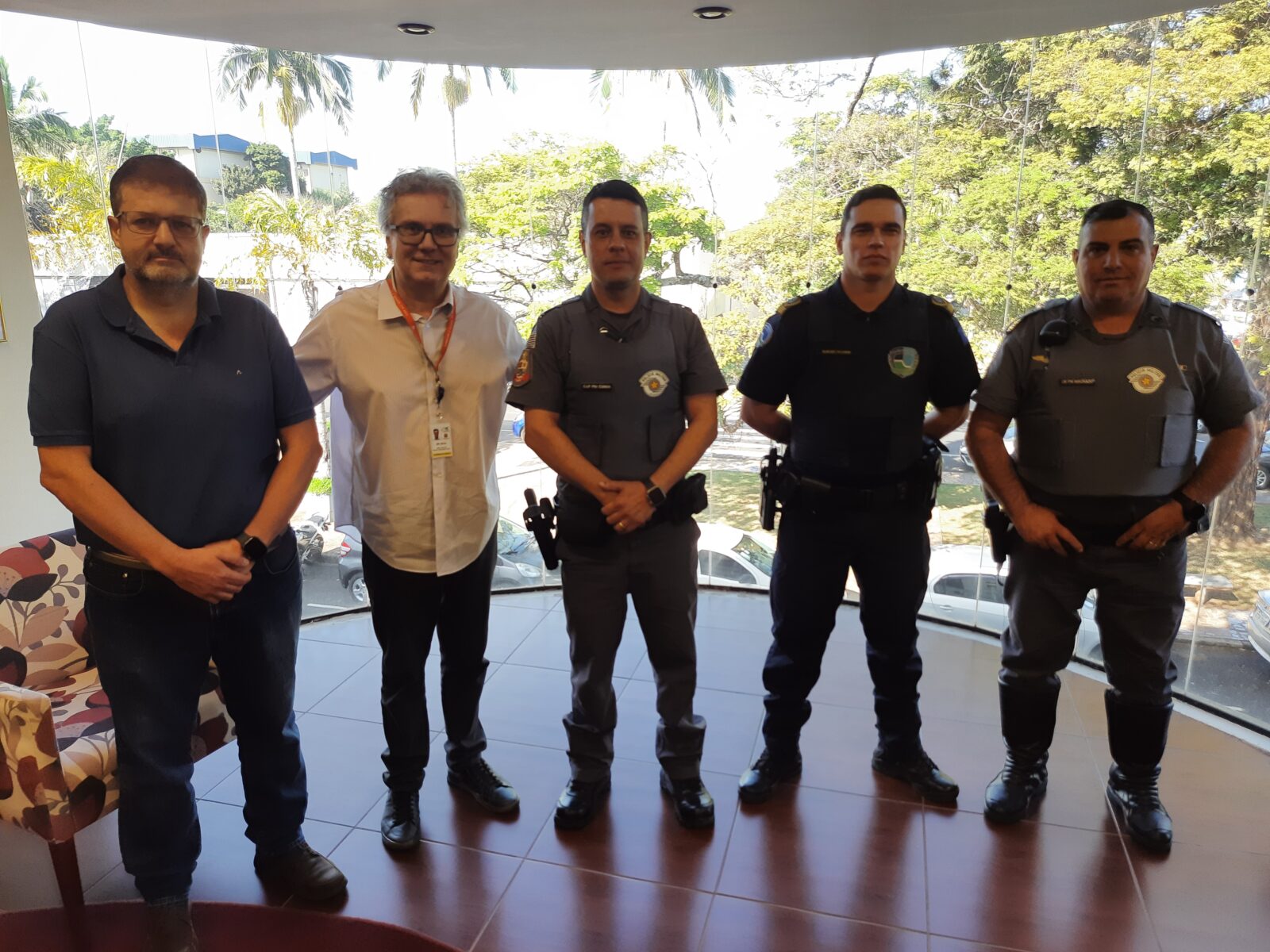 Participaram do encontro o Superintendente do HCFMB, José Carlos Souza Trindade Filho, o Secretário Municipal de Segurança e Direitos Humanos de Botucatu, Marcelo Emílio de Oliveira, o Capitão da Polícia Militar, Ricardo Cunha, o cabo da Polícia Militar da base de Rubião Jr, Machado, o Subcomandante da Guarda Civil Municipal, Sidnei Pichinin.