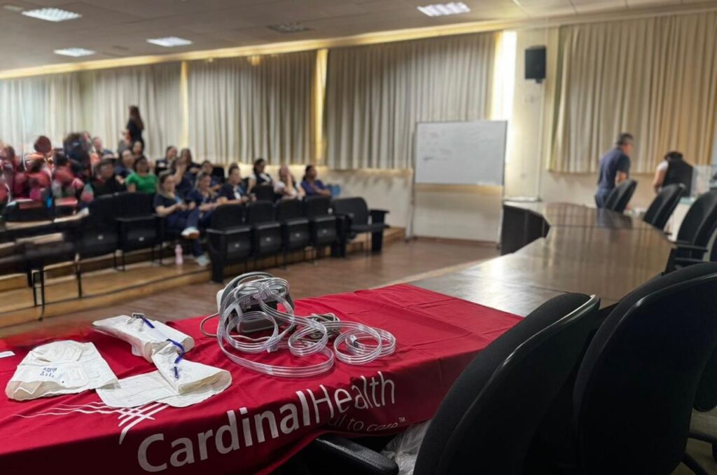 O conteúdo foi ministrado pelas representantes da Cardinal Health, Beatriz Suter e Maria de Guadalupe Nascimento Correa e pela enfermeira e Diretoria do Departamento de Logística e Atendimento do HCFMB Karen Aline Batista da Silva.
