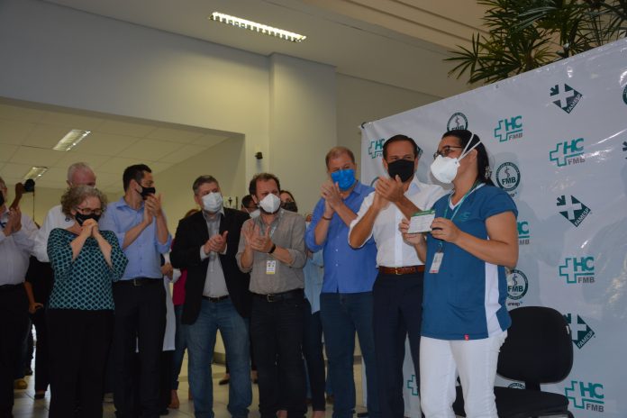 Na presença do Governador João Doria, do Superintendente do HCFMB Dr. André Balbi, e demais autoridades municipais, o HCFMB foi o primeiro hospital da região a iniciar a vacinação em profissionais da saúde, priorizando os que atuam na linha de frente no tratamento de pacientes da COVID-19.