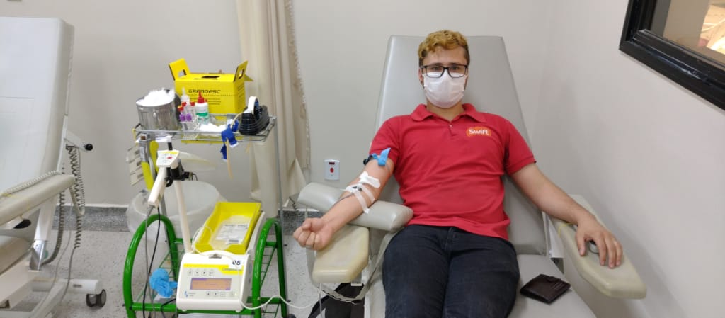 Paulo Vitor durante doação de sangue