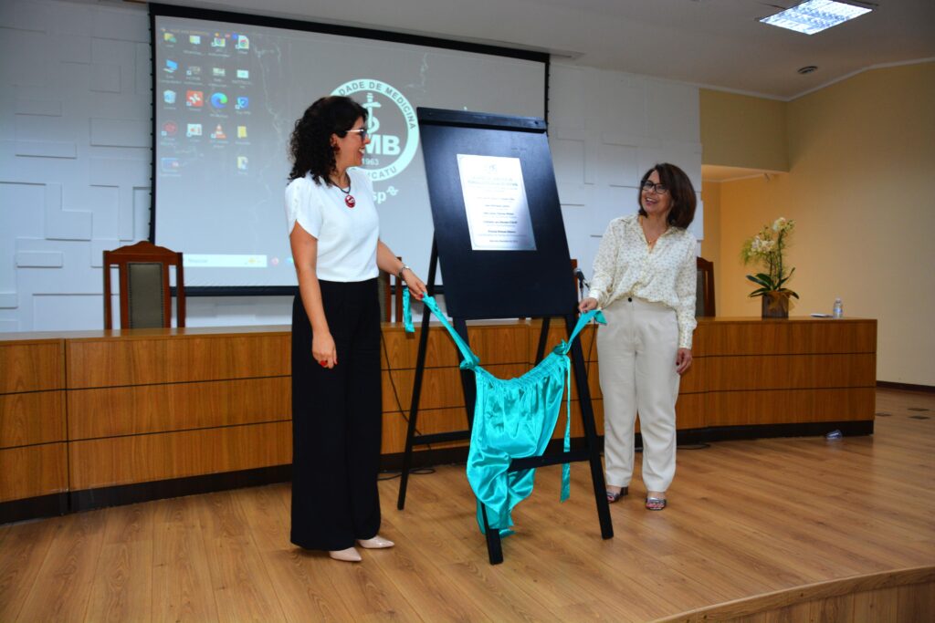 Após os pronunciamentos, foram entregues placas de homenagem para profissionais importantes na criação e consolidação dos trabalhos da Fonoaudiologia na instituição: a médica otorrinolaringologista e Professora Titular da FMB | Unesp, Regina Helena Garcia Martins (representada pela médica Cláudia Xavier); o médico neurologista do HCFMB e Professor Associado do Departamento de Neurociências e Saúde Mental da FMB, Arthur Oscar Schelp; a pediatra e Professora Emérita da FMB | Unesp, Helga Verena Leoni Maffei, (representada, neste momento, pela Chefe do Departamento de Pediatria da FMB, Miriam Hashimoto); a fonoaudióloga pioneira do HCFMB Ivanira Ayako Tamashiro (representada, neste ato, por Marisa Fioravanti, fonoaudióloga aposentada do Hospital) e ao médico otorrinolaringologista Zenshi Heshiki.