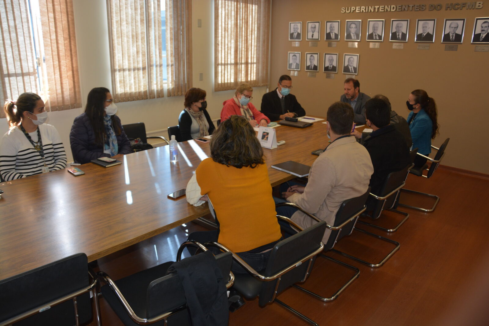 A visitação contou com a presença do Superintendente do HCFMB, Dr. André Balbi, a Diretora de Assistência do Hospital, Drª. Érika Ortolan, o Diretor do Departamento Econômico, Financeiro e Contábil, Dr. João Henrique de Castro, e representantes das áreas assistenciais e administrativas do complexo hospitalar.