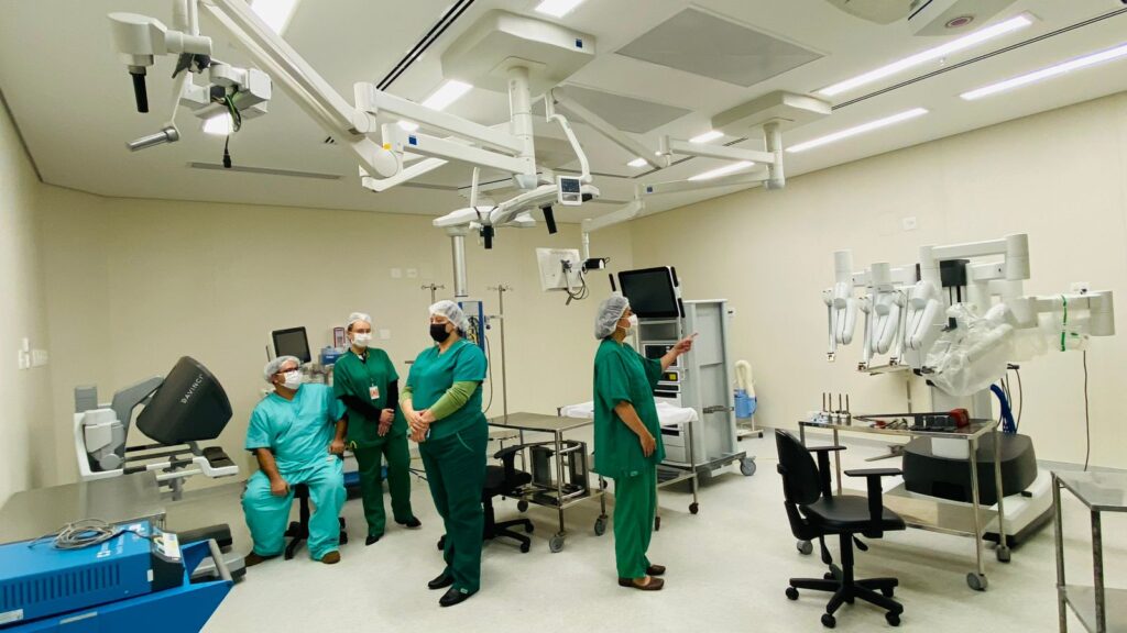 Após a recepção, houve uma visita às dependências do Centro Cirúrgico, da Central de Material e Esterilização e da Engenharia Clínica do HCFMUSP, com o intuito de apresentar ao NATS inovações tecnológicas implantadas nos processos de trabalho. “Um destaque foi conhecer a sala de cirurgia robótica com o robô Da Vinci, tecnologia que possibilita diversos benefícios, como cirurgias menos invasivas, com mais precisão e menor tempo de recuperação”, afirma a vice-coordenadora do NATS do HCFMB, Marília Mastrocolla Cardoso.