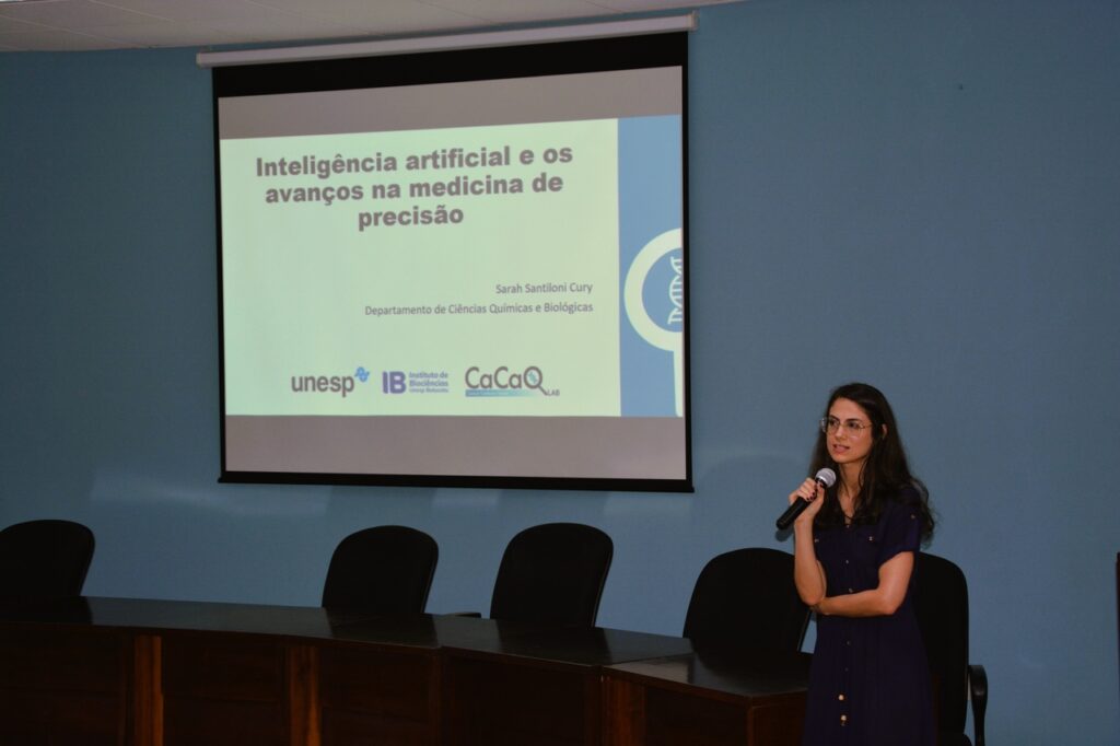 Em sua fala, Sarah destacou o uso da inteligência artificial e da bioinformática para a identificação dos melhores tratamentos para o paciente. “A palestra busca demonstrar como aplicamos a metodologia de inteligência artificial e bioinformática no IBB para a predição de tratamentos mais precisos para pacientes com câncer, olhando cada um de forma específica e considerando cada uma de suas particularidades. Com isso, queremos mostrar como utilizar ferramentas mais fáceis e acessíveis para, a partir da bioinformática, identificar padrões específicos de pacientes e, com isso, oferecer o melhor tipo de tratamento”.