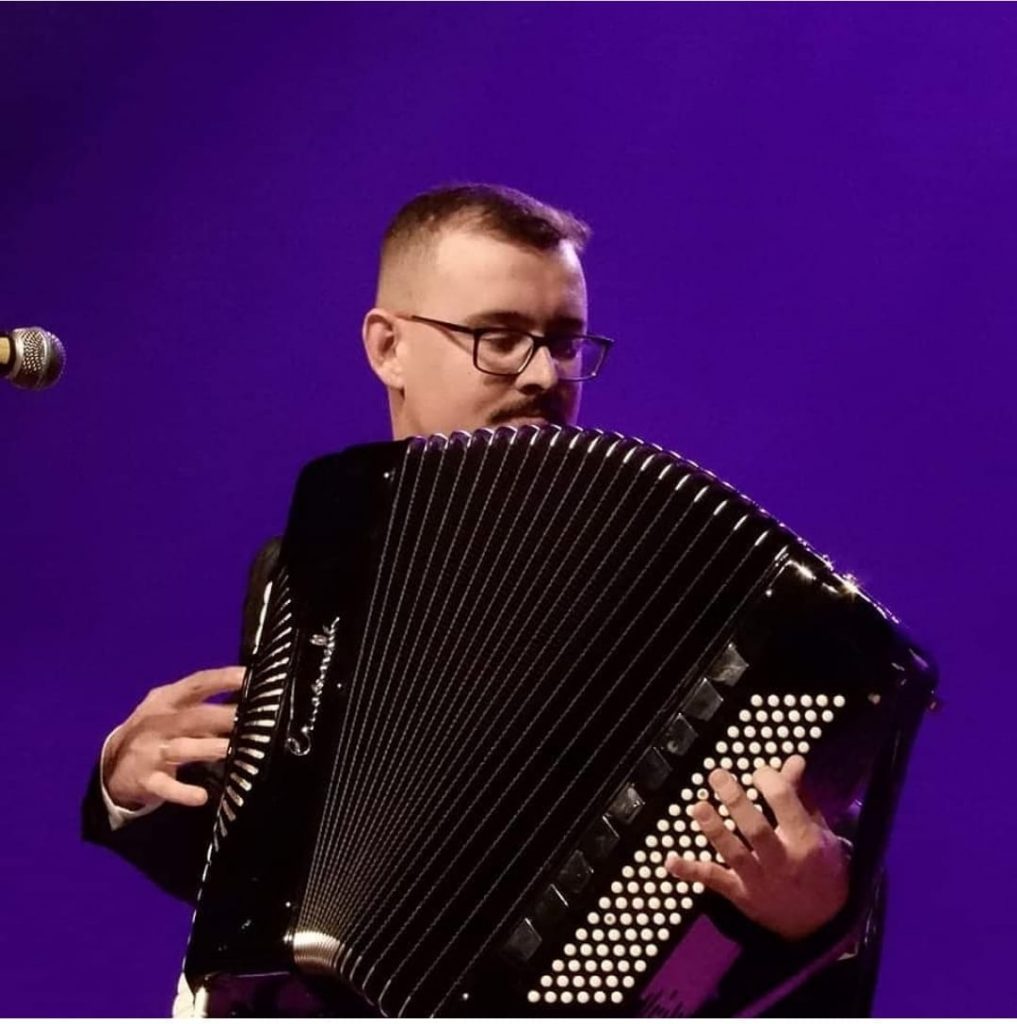 Com apenas 12 anos de idade iniciou sua jornada na área musical aprendendo a tocar diferentes tipos de instrumentos e atualmente, além de se apresentar em diversos eventos como músico, ele ministra aulas de acordeon (sanfona) a quem tem interesse em aprender sobre este instrumento.