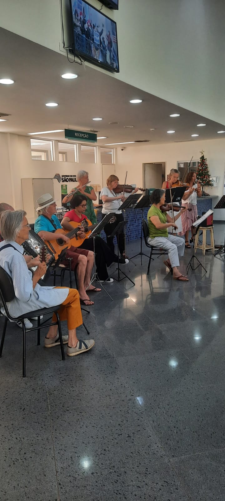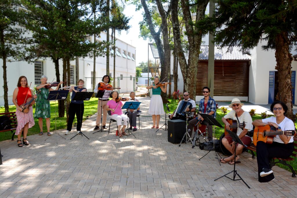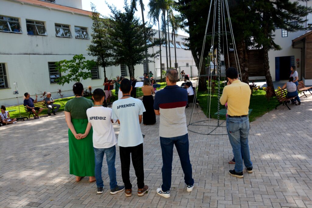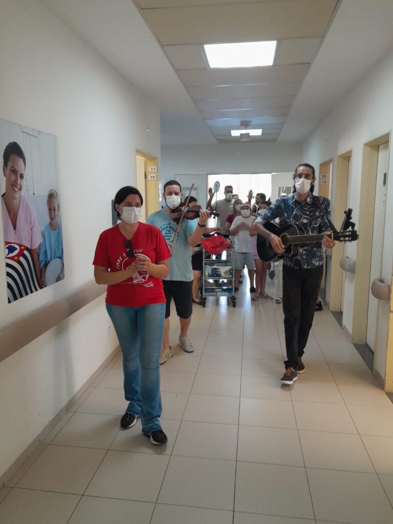 Já na quarta-feira, 20, o Hospital Estadual Botucatu recebeu muitas melodias de amor, com a presença da Banda Orqueschrista, e os pequenos pacientes da Enfermaria de Pediatria ganharam presentes e uma alimentação diferenciada para marcar a festa, com mini pizza, pipoca e bolo de pote. Um grupo de voluntários de Pereiras trouxe alegria e encanto para as crianças da Pediatria, UTI Pediátrica e Pronto-Socorro Pediátrico, com a presença do Papai Noel. Na manhã de quinta-feira, 21, foi a vez dos jardins do Templo Ecumênico receberem a apresentação da Orchestrinha, sob regência e coordenação de Christa Leite de Andrade, composto por alunos da professora e voluntários, com participação especial da Maestro da Orquestra Sinfônica de Botucatu Fernando Ortiz de Villate.