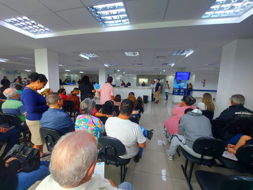 A iniciativa permite que a equipe multiprofissional transmita informações de diversos assuntos, por meio de vídeos ou presencialmente, aos pacientes atendidos no Ambulatório de Especialidades do HCFMB e a seus acompanhantes.
