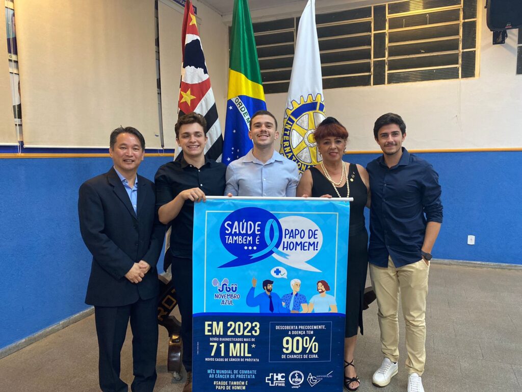 A conscientização sobre câncer de próstata e a campanha Novembro Azul foram os assuntos da iniciativa no dia 13, no 1º andar do Ambulatório de Especialidades, com a presença do docente da FMB e urologista do HCFMB, Rodrigo Guerra, e de alunos pertencentes à Liga de Urologia da FMB | Unesp. A temática também foi abordada pelos representantes do HCFMB e FMB no Rotary Club Bons Ares e na ETEC Dr. Domingos Minicucci Filho.