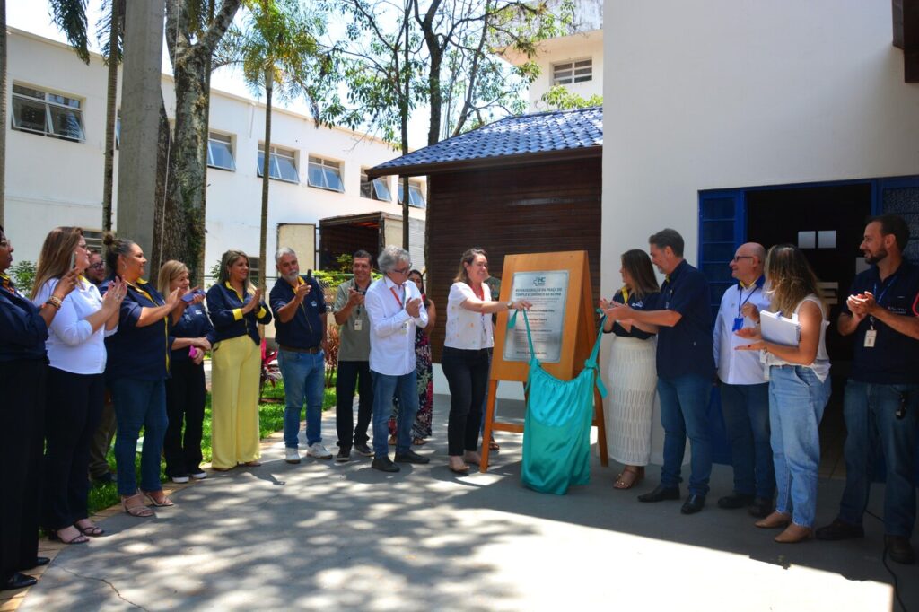 Após o depoimento das empresas parceiras, houve o descerramento da placa comemorativa da reinauguração da praça.