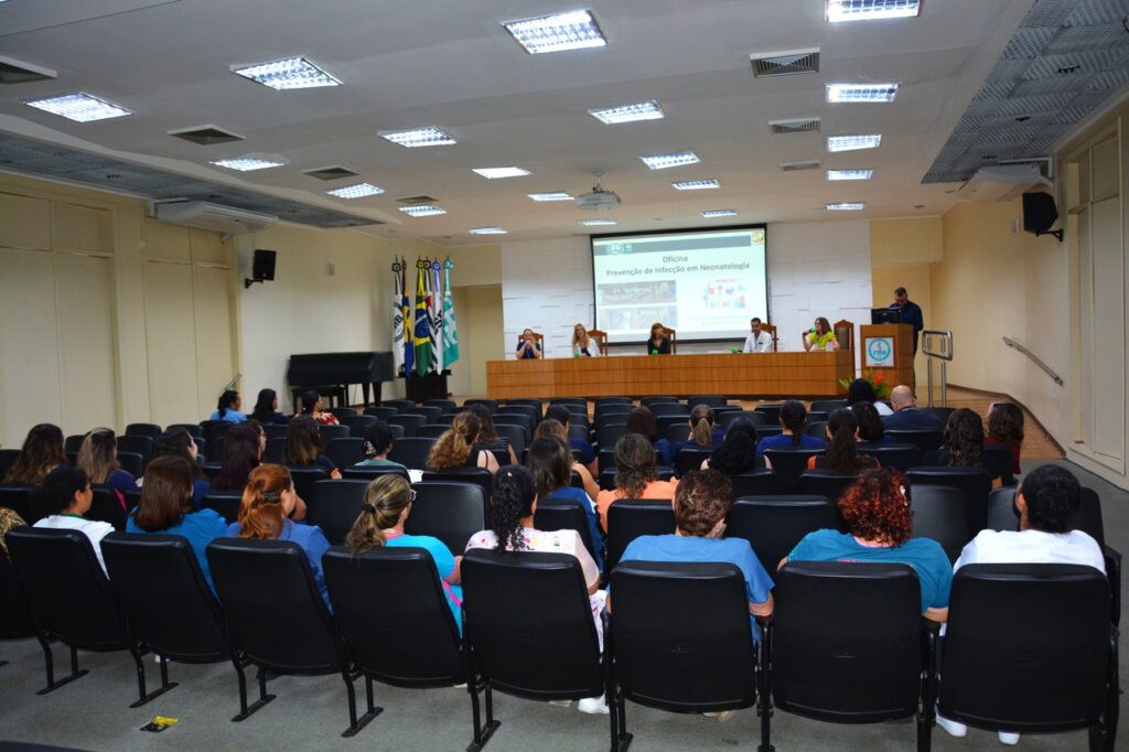 Na última terça-feira, 10, o Hospital das Clínicas da Faculdade de Medicina de Botucatu – Unesp (HCFMB) recebeu profissionais de saúde entre eles médicos neonatologistas, enfermeiros, técnicos de enfermagem, fisiioterapeutas para um workshop sobre prevenção de infecção hospitalar em Neonatologia, realizado no Salão Nobre da FMB.